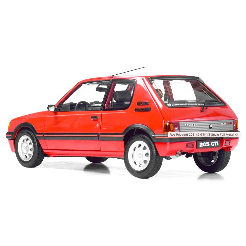 Build an accurate replica of the Peugeot 205 GTI Red with this full kit at 1/8 scale. This officially licensed Peugeot model features metal and plastic parts, offering exceptional realism. Ideal for (not-so!) miniature car collectors, this kit allows you to construct a highly detailed model of this legendary hot hatchback from the 1980s.