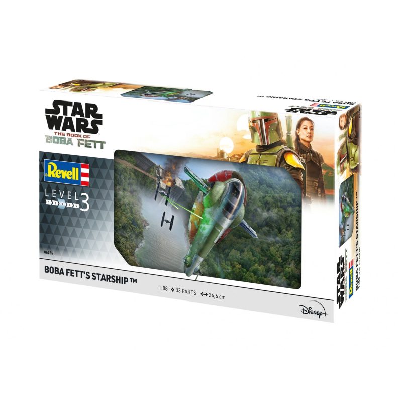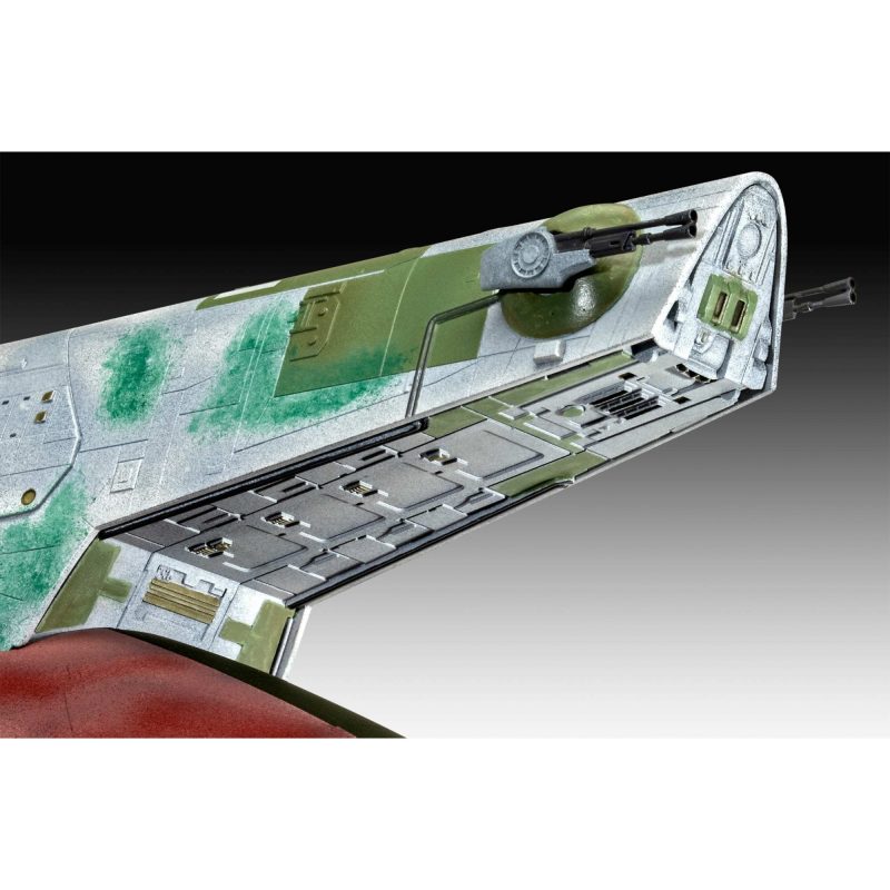 This 1/88 scale Revell kit recreates Boba Fett’s Starship, the iconic vessel seen in The Book of Boba Fett. Originally a patrol craft, the ship was heavily modified by the legendary bounty hunter to suit his dangerous profession. With extensive weaponry, reinforced shields, and a powerful hyperdrive, it remains one of the most recognisable ships in the Star Wars universe.