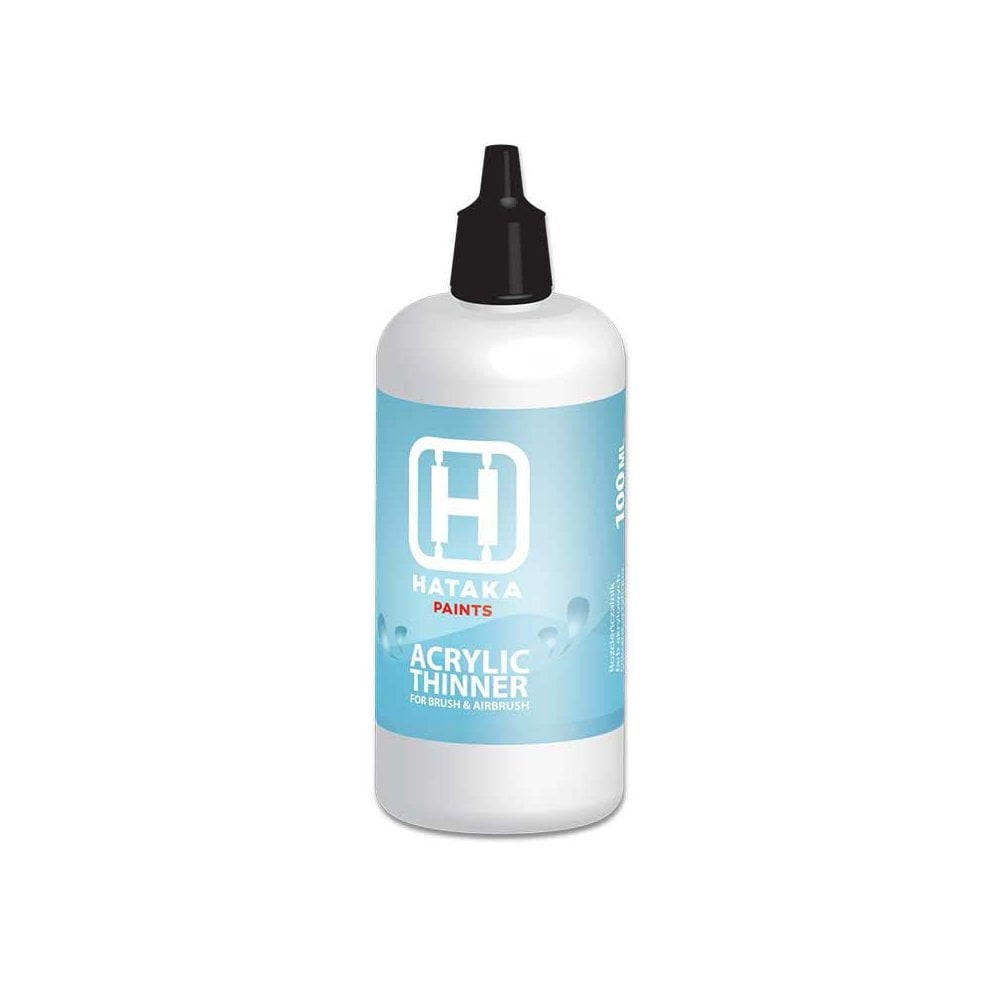 100ml Acrylic Thinners Hataka XP01Hataka Hobby acrylic paints thinner formulated and tested to achieve the best result working with Hataka Hobby Red Line and Blue Line paints.Due to its composition it allows for dilution of Hataka Hobby Red Line and Blue Line paints without loss of adhesion and improves flow through airbrush.The thinner is available in 100 ml bottles.
