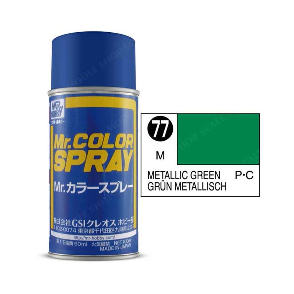 Mr Color 100ml Metallic Green Spray Can S-077 A wide variety of colours with excellent coverage for a multitude of hobby, craft & household purposes