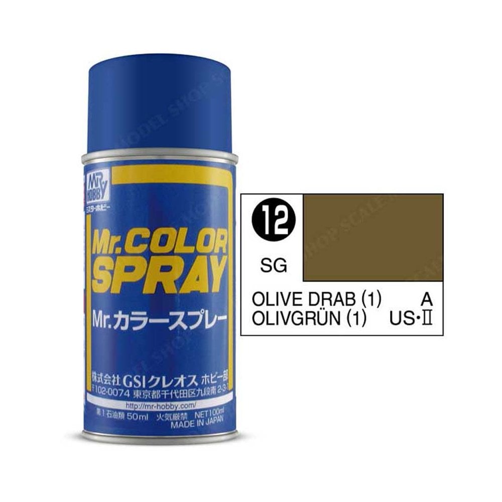 Mr Color 100ml Olive Drab (1) Spray Can S-012 A wide variety of colours with excellent coverage for a multitude of hobby, craft & household purposes