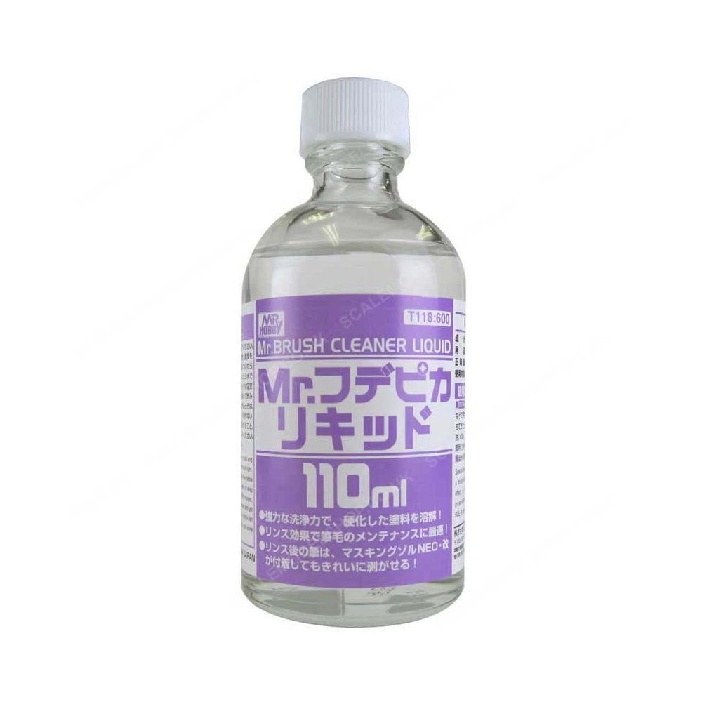 Mr Hobby T118 110ml Mr Brush Cleaner Liquid is a high-quality modelling solution used to thin lacquer paints or improve flow and finish when airbrushing. It ensures consistent coverage and helps achieve a smooth, even surface on scale models.