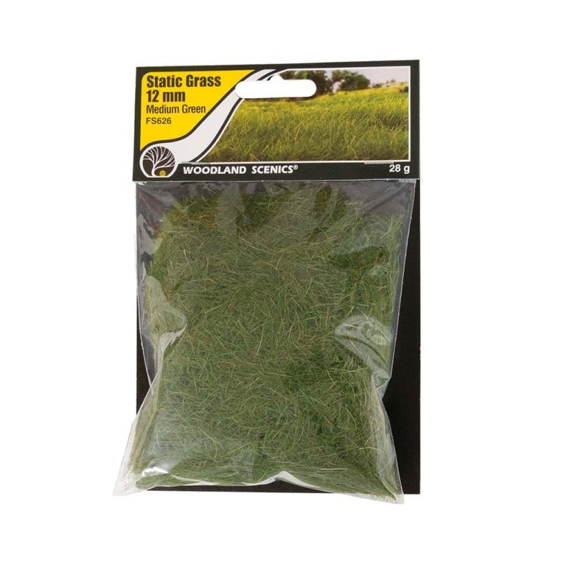Woodland Scenics Static Grass Medium Green (12mm) brings natural, sunlit colour to your model landscapes. Ideal for O scale and larger dioramas, it recreates the look of tall, healthy grass often found on riverbanks, country fields, or wild verges.
