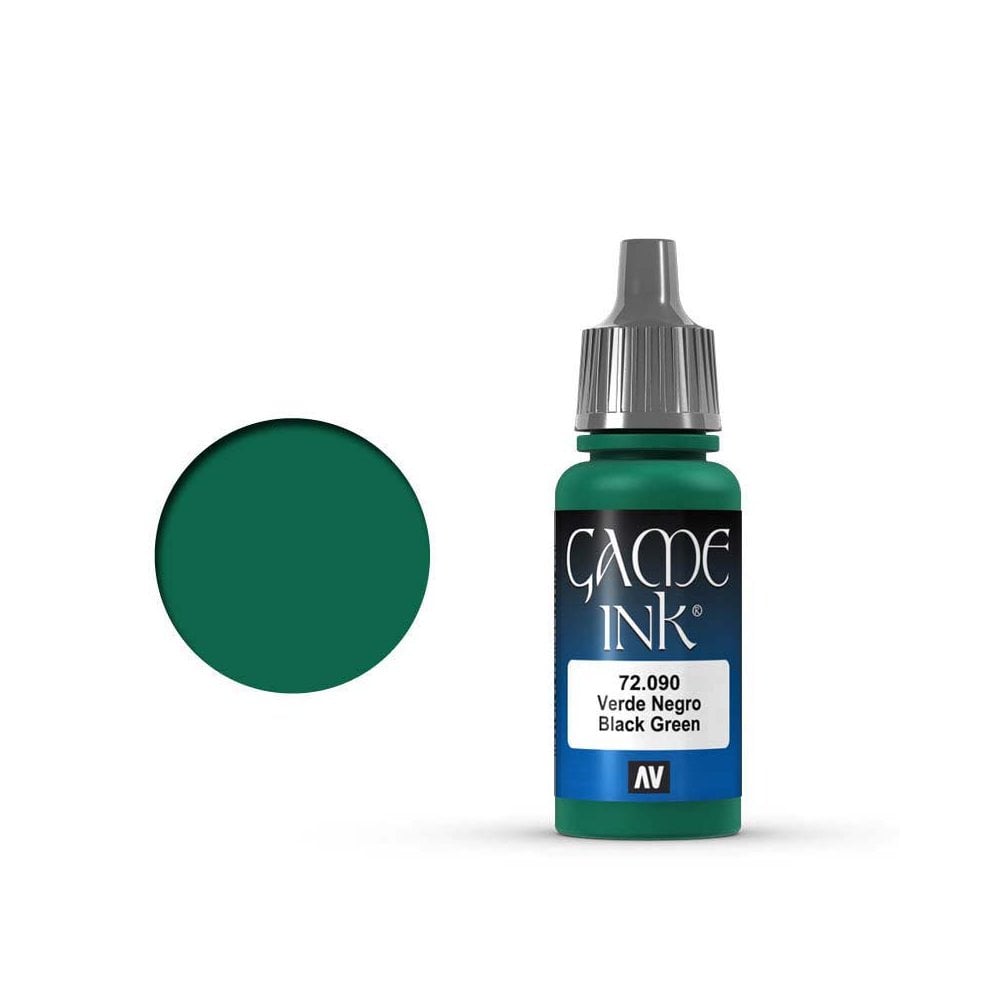 17ml Game Ink Inky Black Green Vallejo Game Color 72.09 Acrylics colors in a matt and opaque, water-based formula, especially designed for brush-on use. Each color has been meticulously developed in collaboration with model-painters who specialize in fantasy figures and dioramas.The formulation of these colors has been developed signed taking into account that some of these figures are used in tabletop games, so that Game Color is manufactured with a revolutionary new resin which offers extraordinary resistance to the damage caused by frequent handling. It is recommended to apply Game Color on a previously primed surface.The colors dry rapidly and form a homogenous and self-leveling film while preserving even the smallest detail of a miniature. Game Color presents an extra ordinary adherence on all grounds, such as resin, plastic, steel and white metal. Painting tools are cleaned with water.Game Color is not flammable, and does not contain solvents. Please see also certified safety information of the product on the Safety page.