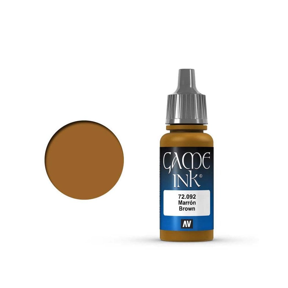 17ml Game Ink Inky Brown Vallejo Game Color 72.092 Acrylics colors in a matt and opaque, water-based formula, especially designed for brush-on use. Each color has been meticulously developed in collaboration with model-painters who specialize in fantasy figures and dioramas.The formulation of these colors has been developed signed taking into account that some of these figures are used in tabletop games, so that Game Color is manufactured with a revolutionary new resin which offers extraordinary resistance to the damage caused by frequent handling. It is recommended to apply Game Color on a previously primed surface.The colors dry rapidly and form a homogenous and self-leveling film while preserving even the smallest detail of a miniature. Game Color presents an extra ordinary adherence on all grounds, such as resin, plastic, steel and white metal. Painting tools are cleaned with water.Game Color is not flammable, and does not contain solvents. Please see also certified safety information of the product on the Safety page.