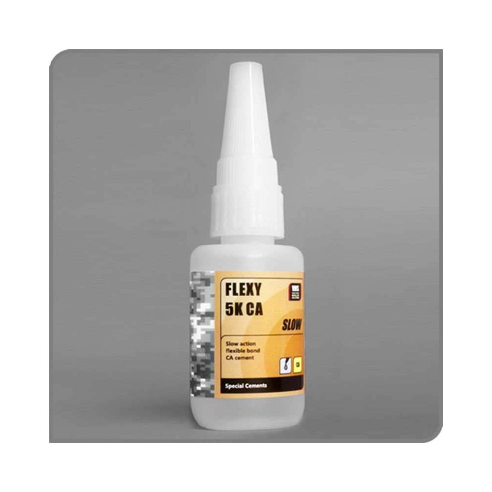 This is a much slower version of widely acclaimed Flexy 5K glue, thanks to its formulation this glue can be used for gluing parts that require a lot of adjustment such as photo-etched Zimmerit sheets, metal panels, armour plating and the like. As the original Flexy 5K glue forms flexible bond that withstands much more punishment than classic brittle CA. This essentially means less accidentally lost parts and more productive and enjoyable work as there is much less need to reglue vulnerable parts. Extended open time (500% the standard CA) allows for very smooth positioning of the parts. You also will be able to glue tricky parts (both PS and metal) that produce tension. Flexy is less aggressive and more easily removed when necessary it doesn’t “eat plastic” as classic CAs.