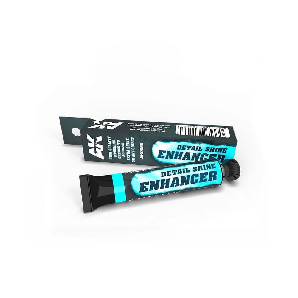 20ml High Quality Modeling Grease AK Interactive AK-9050Detail Shine Enhancer is a special modeling wax developed to create extra shine on certain objects and add more richness to the colors.It can be used on models, dioramas and vignettes, allowing you to achieve different effects on small surfaces, such as grease or wet effects on canvas or floor tiles. With this product, you can easily add ultra-realistic touches to your model without having to use a varnish.The tube contains 20ml / 39gr of product