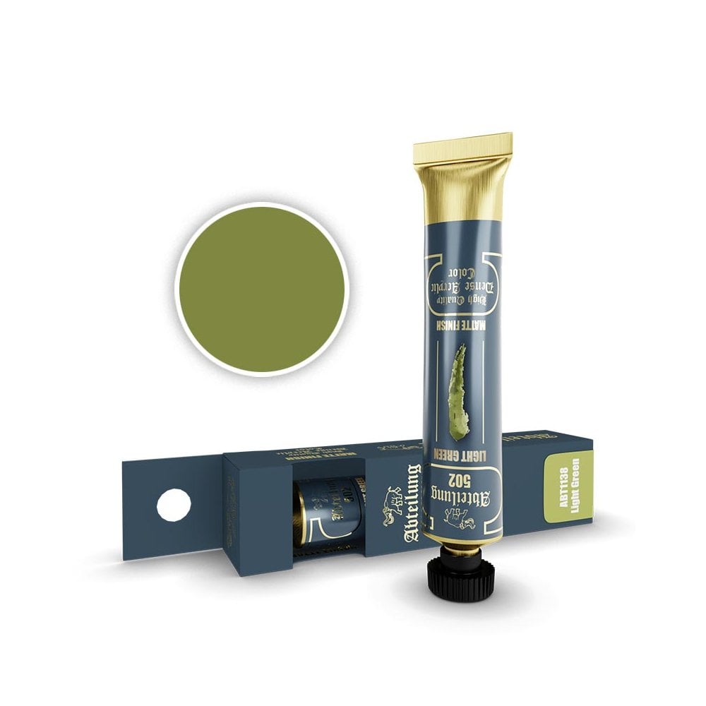 20ml Light Green Acrylic TubeThe Abteilung 502 acrylic tube range for artists has a formula that offers maximum opacity and coverage, combined with the vividness and intensity of the color, and provides a matte finish.Specially designed for figure painters looking for the highest quality pigment finish,Abteilung 502 artist colors also have fine art applications such as painting on canvas or airbrushing or illustration, combining the short drying times with the smooth finish and endless possibilities of acrylics. The High Quality Dense Acrylics range from Abteilung 502 covers all the needs that artists and modelers may ever have. Their matte finish makes them perfect for figure painting and detailing, although they can be used in many ways
