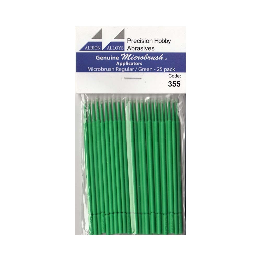 The Albion Alloys 25pk Microbrush Green Regular (Product Code: 355) is an essential tool for precision application tasks in scale modelling, crafting, and other detailed work. These microbrushes are designed to deliver small, controlled amounts of liquids such as glue, paint, or decal solutions with accuracy and ease.