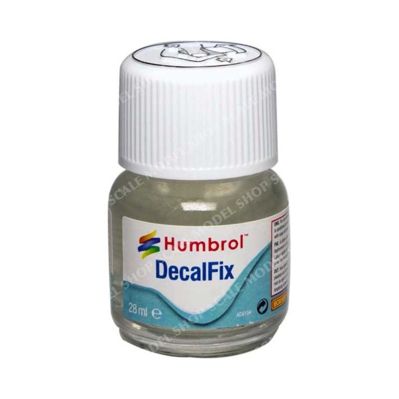 Humbrol Decalfix (AC6134) is a precision decal setting solution supplied in a 28ml glass bottle, specially formulated to improve decal adhesion and finish. Designed for water-slide decals used in scale modelling, Decalfix softens the decal film, allowing it to conform to complex surfaces, panel lines, and raised details — ensuring a clean, professional result every time.