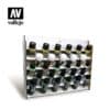The perfect solution for storing Vallejo colors. This model has space for 28 units of Weathering Effects, Pigments, Washes, Metal Color and Primers in either 35 ml/1.18 fl oz or 60 ml/2.02 fl oz bottles. The tilted design does not require glue and is easy to assemble.
