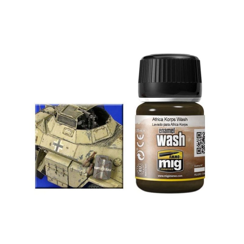 D.A.K. wash for Africa Corps vehicles, also other light colored desert vehicles. Apply on details and remove excess with a clean brush moist with Enamel Thinner.