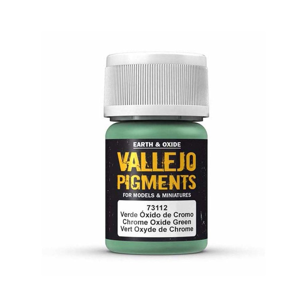 35ml Chrome Oxide Green Pigment Vallejo 73.112 The Vallejo Pigments, a selection of natural earth and synthetic pigments, have been chosen for their permanence, their excellent light fastness, and for the extra fine milling of their particles, which facilitates the mixtures and their application on models and dioramas. The range of pigments includes a series of colors selected for representing the wear and erosion caused by the conditions of hard use and exposure on vehicles and buildings, to reproduce the dust caked on the tracks of the tanks, the rust on the armour and the wide range of effects caused by the climate and geographic conditions of deployment. Pigments can be applied in their dry form, directly by brush on the model, since they have excellent adherence; they can also be fixed in place with Thinner when used to portray dry mud or accumulated dust. With Pigment Binder, the pigments can be used to create volumes, such as accumulated dirt and mud. Painting tools are cleaned with water.