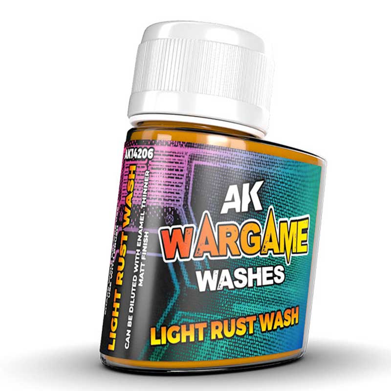 Light Rust Wash from AK Interactive is part of the Wargame series, created to replicate lighter, reddish rust tones on models. Suitable for fantasy and sci-fi miniatures, it provides natural corrosion effects for weapons, armour, vehicles, and terrain pieces.