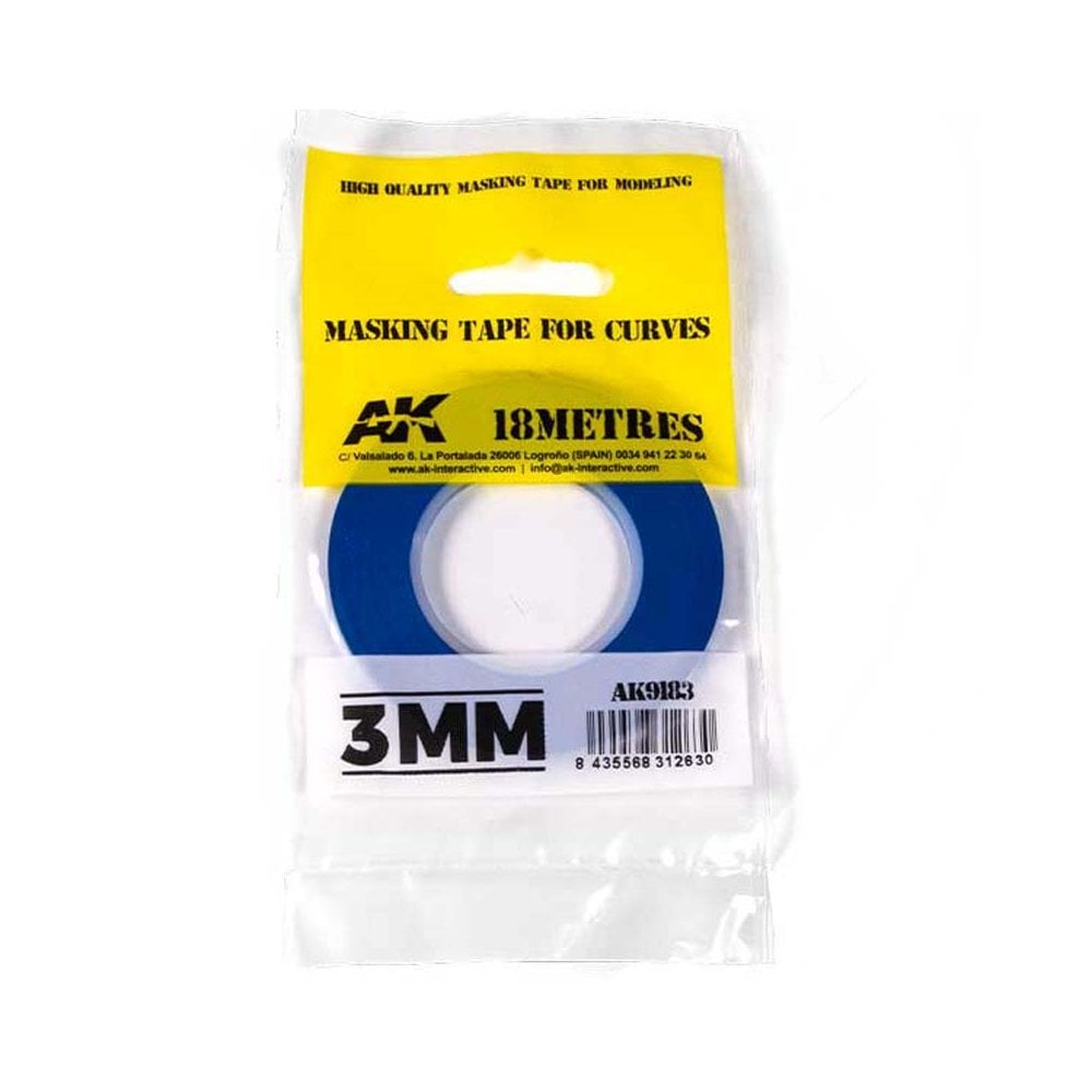 Flexible high-quality masking tape for precision work, making it ideal for airbrushing and designed with a firm sealing edge.nnThis flexibility allows you to apply curves and rounded shapes, obtaining a uniform result when painting free of unrealistic sharp angles or defects.nnThis also allows the tape to adapt and conform to complex surfaces.nnThis tape features a residue free adhesive, ideal for scale models and fine or delicate finishes.nnThe strength of this tape allows it to be used as a guide to engrave or scribe details in plastic.nnThis tape can be easily be cut to shape with scissors or hobby knife.nnRolls of 18 meters.nn nn3 MM. 18 METERS LONG.