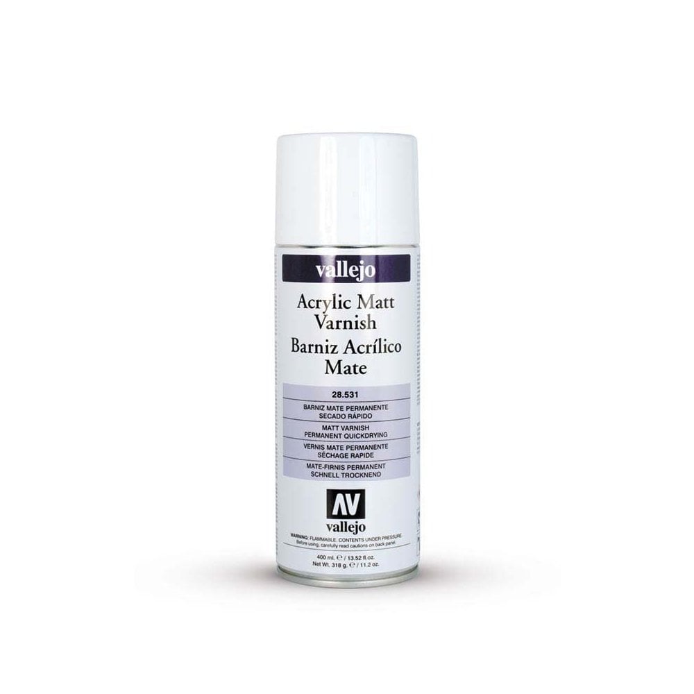 400ml Gloss Vallejo 28.530 : The perfect combination of base coat and highly pigmented color, developed for use on all metal, plastic and resin models and miniatures. Our new original and unique spray formula leaves a perfect matt and self-levelling finish, designed to respect and bring forth even the finest details of the models and miniatures.The Hobby Paint assortment includes 3 basic colors, 19 fantasy shades, 5 WWII AFV and 4 WWII infantry colors.The colors are a perfect match to the equivalent shades available in our Game and Model Color ranges, so both painting techniques can be combined. Each Hobby Paint shows the original color applied on the colored ring around the top and is equipped with 2 different nozzles; one with a low discharge flow, especially recommended for fine lines and small details, and the other with a medium discharge flow, recommended for thicker lines and for covering larger surfaces; the low-pressure valve allows for excellent spray control.The range is complemented with 3 different varnishes: gloss, matt and satin, recommended for providing extra protection when handling your figures and to give them an overall uniform appearance. Aerosols can not be sent by Royal Mail and must be sent with DPD