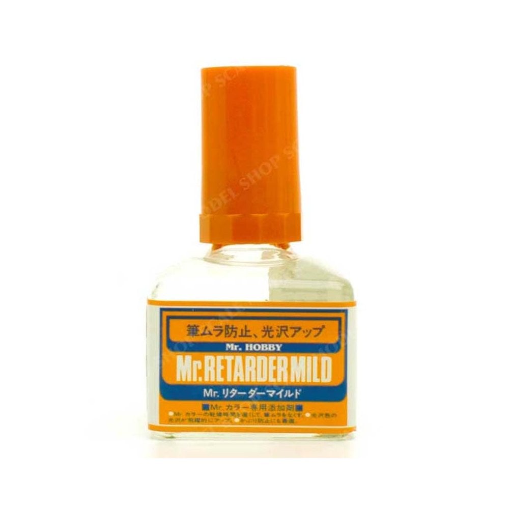 Mr Hobby T105 40ml Mr Retarder Mild is a high-quality modelling solution used to thin lacquer paints or improve flow and finish when airbrushing. It ensures consistent coverage and helps achieve a smooth, even surface on scale models.