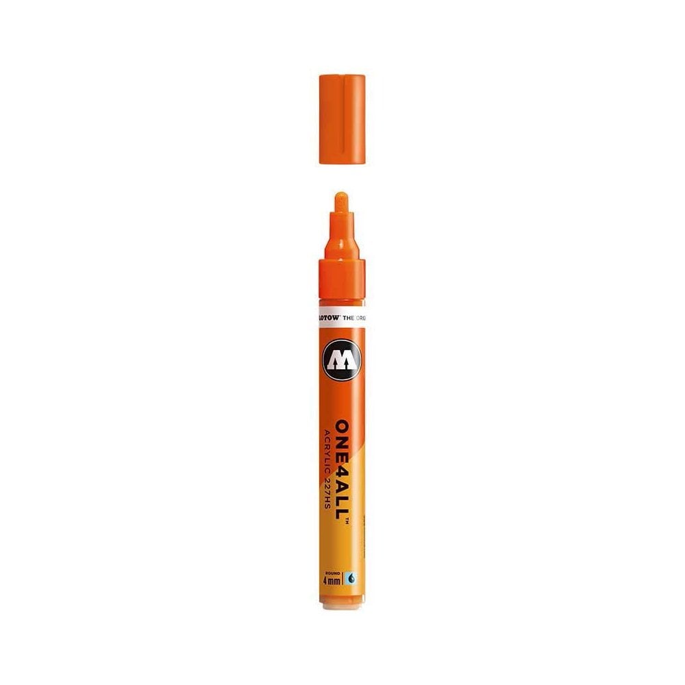 4mm 085 Dare Orange Molotow 227203Highly opaque and UV resistant on nearly all surfaces: The sustainable ONE4ALL™ acrylic marker system has been built to refill and is always reliable in all its functions. A low wear and numerous possible applications offer an added value to these markers. Whether painting surf board, canvas, fridge, graffiti or sneakers: nothing is impossible. With 50 color shades, these markers are talented all-rounders. Individual nuances and color shades can be mixed easily. Effect colors make coloring exciting. Shouldn’t be missing in an artists product range – everyone’s darling since 2008.