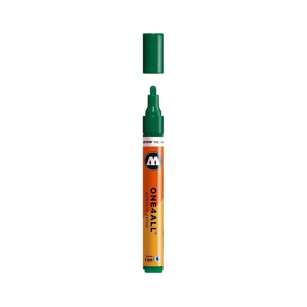 4mm 096 Mister Green Molotow 227209Highly opaque and UV resistant on nearly all surfaces: The sustainable ONE4ALL™ acrylic marker system has been built to refill and is always reliable in all its functions. A low wear and numerous possible applications offer an added value to these markers. Whether painting surf board, canvas, fridge, graffiti or sneakers: nothing is impossible. With 50 color shades, these markers are talented all-rounders. Individual nuances and color shades can be mixed easily. Effect colors make coloring exciting. Shouldn’t be missing in an artists product range – everyone’s darling since 2008.