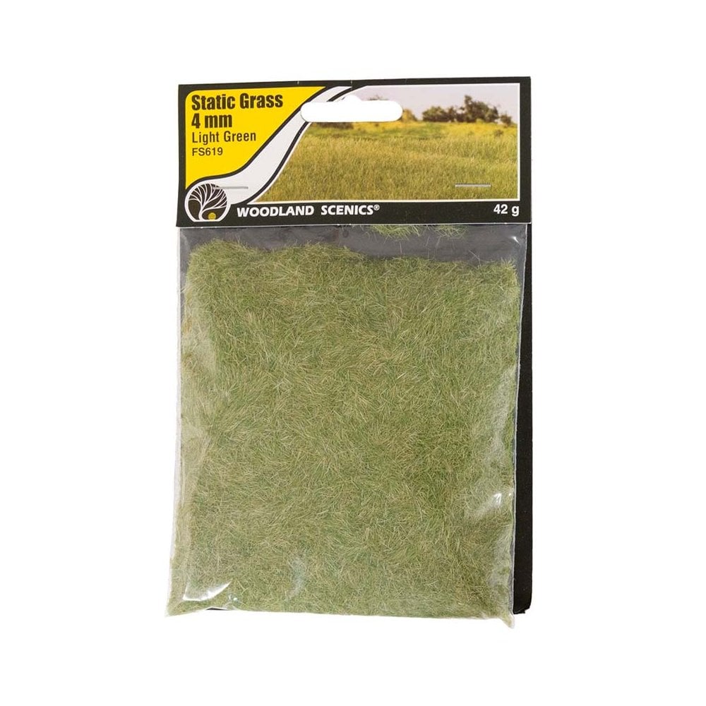Woodland Scenics Static Grass Light Green (4mm) provides a realistic texture and tone for simulating fresh spring or summer growth in your scenic projects. Perfect for railways, military dioramas, or architectural models, this product adds dimension and vibrancy to grassy areas. The 4mm fibre length strikes a practical balance between detail and volume, making it suitable for open fields, roadside verges, and rural pathways.
