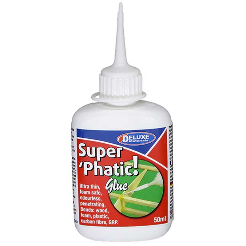 Super Phatic from Deluxe Materials is a high-penetrating yellow aliphatic resin adhesive designed for close-fitting, pre-assembled joints. Its thin consistency wicks deep into the joint, delivering strong and reliable bonds across a variety of materials including wood, foam, plastic, and carbon fibre.