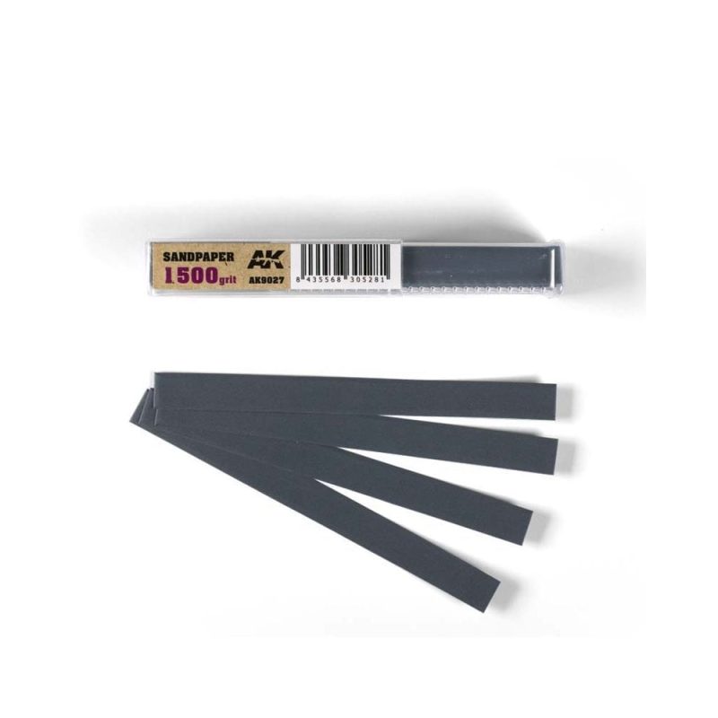 50x Wet Sandpaper 1500 grit AK Interactive AK9027Choose the suitable sandpaper for your work (water or dry based) and thanks to these practical strips of different grains and measures 11×1 cm. you could reach difficult areas comfortably, and discard them when they have worn out. 50 strips included per set.