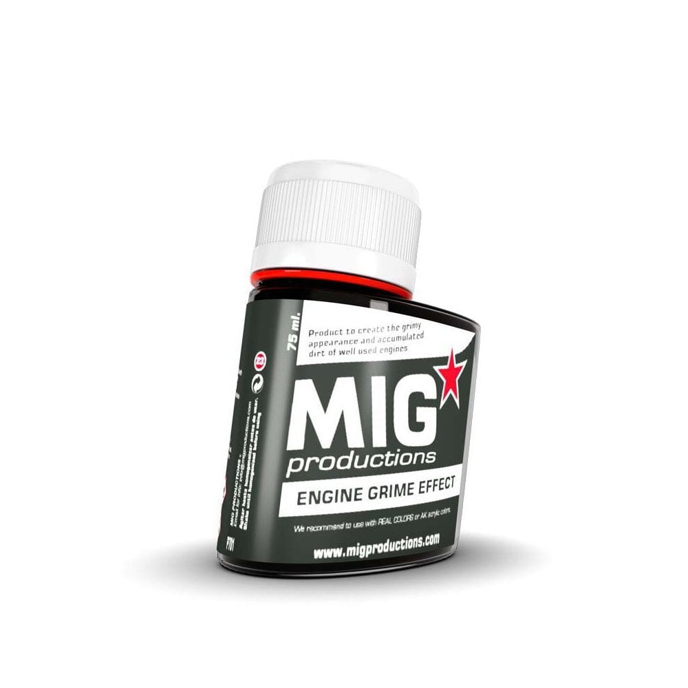 Apply the effect using a medium sized round soft paintbrush. Work with the product onto your scale model in desired areas like engines or mechanisms creating the grimy and accumulated dirt of well used engines appearance. Let dry for about 15 minutes then clean the excess if is needed by using a brush dampened with Thinner for Washes.