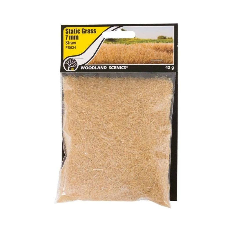 Woodland Scenics Static Grass Straw (7mm) is designed to bring a realistic dry grass effect to model scenes. Ideal for late summer fields, sun-scorched pastures, or drought-affected areas, the long fibres add convincing texture and height in HO scale and above.