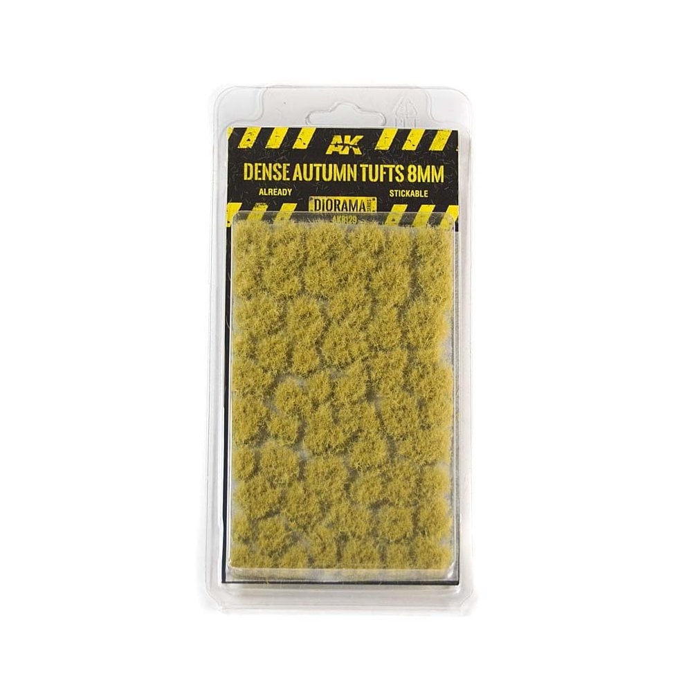 8mm Dense Autumn Tufts AK Interactive AK8129These new miniature vegetation products are perfect to complement your scenes, figure bases and any type of diorama in which you need an extra touch of realism. They are self-adhesive and therefore very easy to use: simply remove the tufts of grass using a pair of tweezers, and place them on the surface.We recommend to fix them with tiny quantities of white glue or AK118 Gravel & Sand fixer to additionally strengthen the junction.Choose the type of grass you need, and create your scene quickly and easily, using the AK-InteractiveDiorama Series product range.