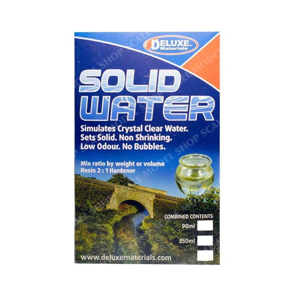 Solid Water from Deluxe Materials is a low-odour, two-part resin system designed to replicate crystal-clear water in scale models and dioramas. It is ideal for creating miniature ponds, canals, lakes, and puddles, setting hard for a durable, transparent finish that enhances realism.