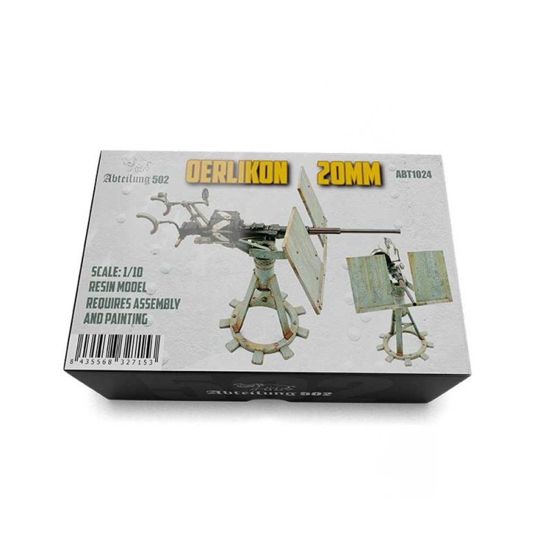 Cannon complete with base. Scale 1:10. Resin parts to assemble and glue. Requires the use of cyanoacrylate. The Oerlikon 20mm automatic cannon was used on US Navy ships from 1942, replacing the Browning M2 machine gun, which had less range and firepower. It gained special prominence in its role as a naval anti-aircraft gun, especially against Japanese kamikaze attacks during the Pacific War.