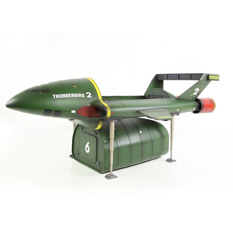 - Turned metal support legs, display Thunderbird 2 in elevated, grounded, or in-flight position.