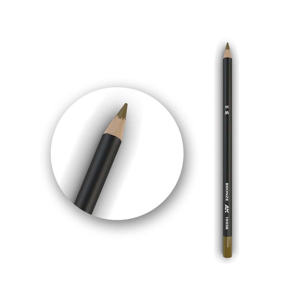 The AK Interactive Bronze Weathering Pencil is designed to add metallic bronze tones and realistic weathering effects to scale models. Its 17cm semi-grease water-based core provides smooth application and blending, allowing modellers to highlight edges, accent details, and replicate worn metal surfaces.