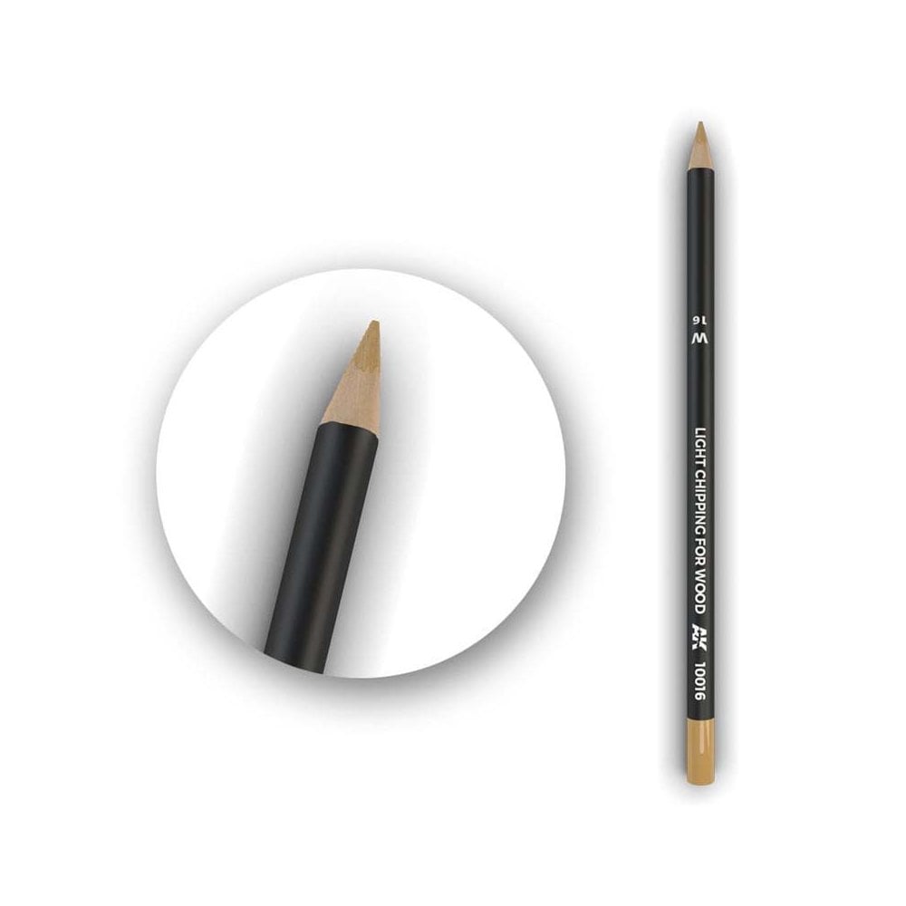 The AK Interactive Light Chipping For Wood Weathering Pencil is designed to help modellers reproduce authentic wood wear and chipped paint effects. With a 17cm semi-grease core, this water-based pencil delivers smooth application and subtle blending, making it easy to achieve natural-looking results.