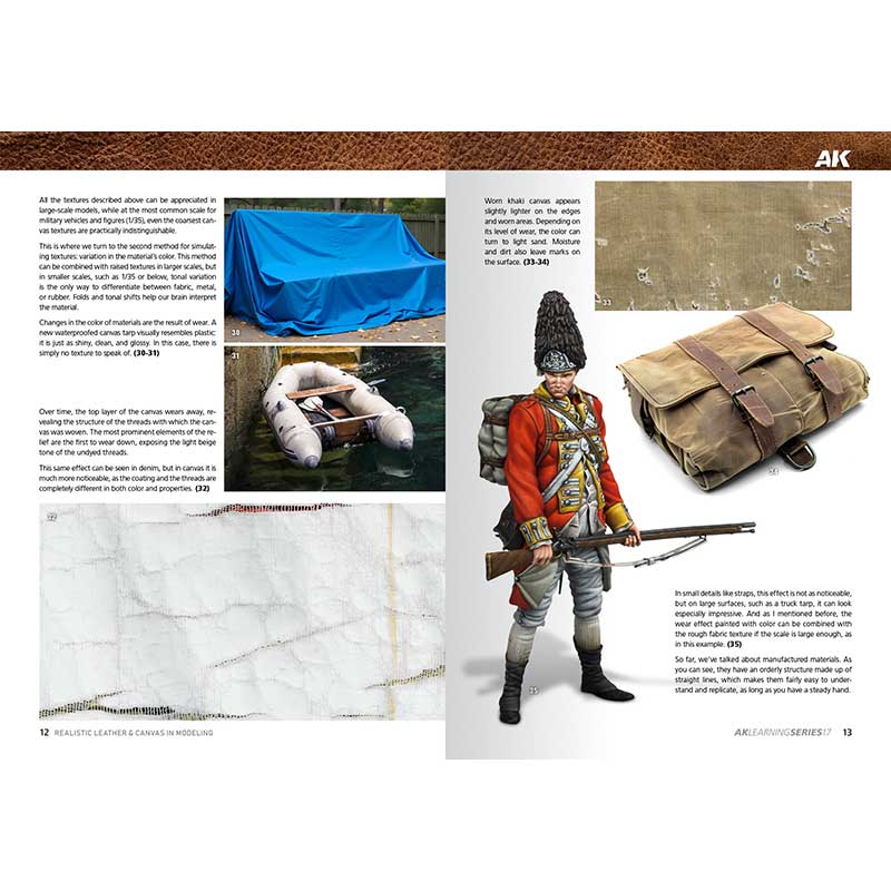 This volume from AK Interactive’s LEARNING series provides an in-depth guide to painting realistic leather and fabric effects. With clear step-by-step explanations, the book shows how to achieve authentic finishes for commonly used materials in modelling such as canvas, burlap, and tarpaulin.