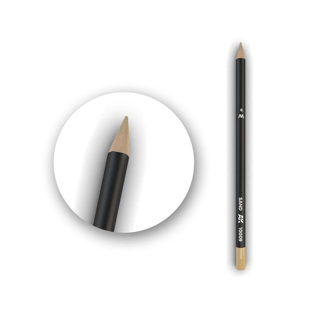 The AK Interactive Sand Weathering Pencil is designed to reproduce dust and desert tones on scale models. Its 17cm semi-grease water-based formulation ensures smooth application, allowing modellers to easily create subtle highlights, sand deposits, and dry weathering effects on vehicles and dioramas.