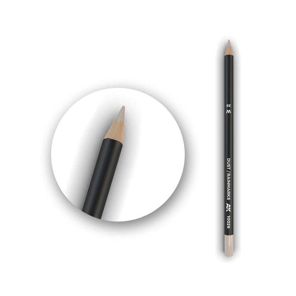 The AK Interactive Dust-Rainmarks Weathering Pencil is designed to replicate natural streaks and subtle marks left by rain and dust on vehicles and structures. Its 17cm semi-grease water-based core provides smooth application and easy blending, allowing modellers to create realistic environmental effects.
