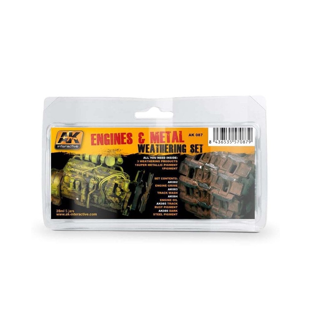 The AK Interactive Engines and Metal Weathering Set provides everything needed to achieve realistic effects on engines, machinery, and metallic components. With washes, oils, and specialised pigments, this set allows modellers to replicate dirt, grease, rust, and polished steel tones with ease.