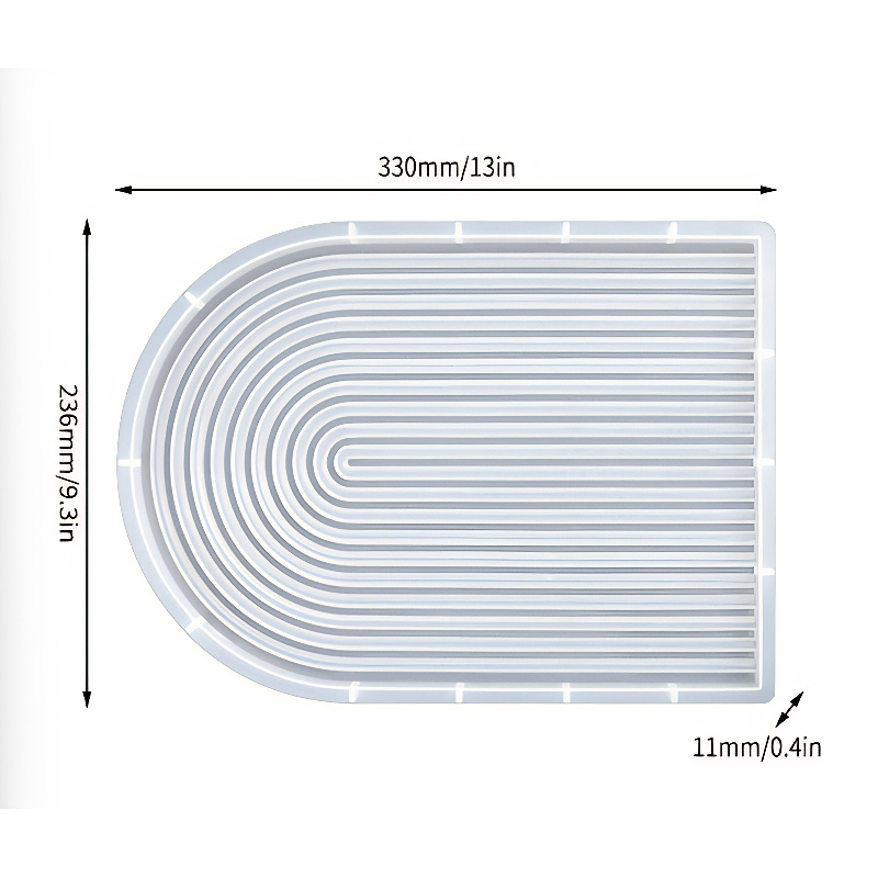 This extra large silicone mould is designed to cast an arched tray with continuous ribbed detailing that follows the curved profile of the mould. The elongated shape combines a rounded end with a straight edge, creating a bold and functional tray design.