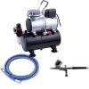 This oil-free piston compressor(Airbrush Compressor) is an excellent alternative to purchasing propellant cans for your airbrush. The AS-186 has a 3L tank that has its pressure maintained automatically by the compressor. Once it has reached the maximum output pressure of 57 PSI it shuts off automatically. Only auto restart when the airbrush is triggered and the tank pressure falls below 50 PSI. Compact, portable and quiet, it provides an oil free air supply that is ideal for designers, modellers, artists, cake decorators, nail art and spray tanning.