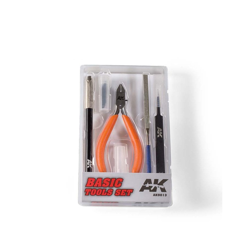 Basic Tools Set AK Interactive AK9013Basic toolkit for beginners, advanced modelersor anyone interested in this hobby that requiresprecision tools.It includes:- Straight tweezers- Cutting pliers- Cutter with replacement blades and safety cap- Metal file