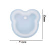This bear face silicone pendant mould features a single cavity measuring approximately 51mm wide by 50mm high, complete with an integrated hanging hole. The rounded ears and soft facial outline give a playful character, making it ideal for cute jewellery pieces, keyrings or personalised gifts.