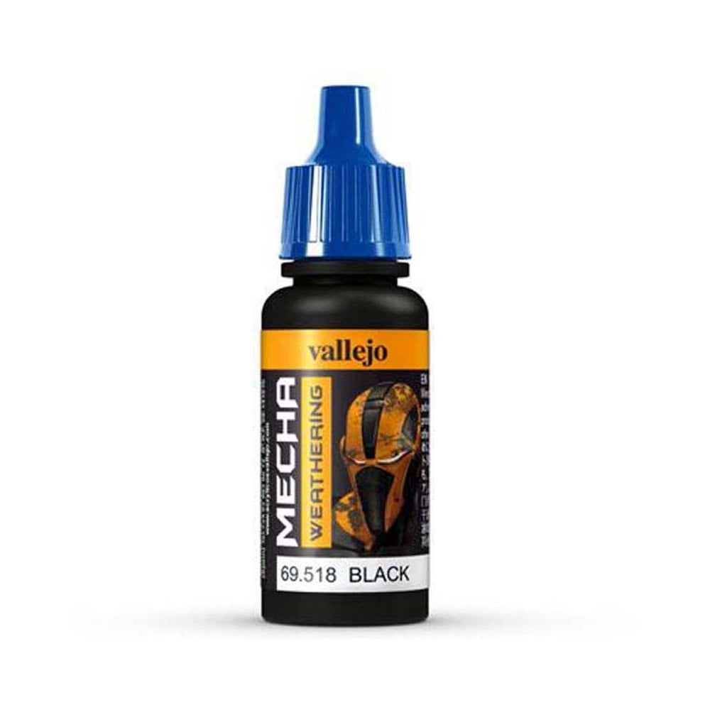 Black Wash 69.518 Vallejo Mecha Color New formula acrylic colors with a satin finish, extra resistant and impact proof especially designed for airbrushing surfaces exposed to aggressive manipulation. The advanced formulation contains a revolutionary component which guarantees exceptional adherence on even the most difficult surfaces, and offers great resistance to rough handling, impact, friction, scratches, etc. Once dry, the Mecha surface looks the same as the original plastic of the model, while yet the smallest details of the original remain clearly visible. The color range includes primers as well as special varnishes ‚¨ also with an exclusive formulation- and a series of colors for aging and weathering effects. It is recommended to apply the Mecha colors in several layers on the previously primed surface; a few hours after application the colors will have dried to form a homogenous coating of extraordinary strength and resistance. Mecha Color can be airbrushed directly or diluted with Vallejo Airbrush Thinner or Flow Improver, and the colors can also be applied by brush. The compressor adjustment recommended is 15 ‚¨ 20 PSI o 0.5 to 1 kg. For best airbrush maintenance we recommend using the Vallejo Airbrush Cleaner.Safety: Mecha Color is not flammable, and does not contain solvents. Please see also certified safety information of the product on the Safety page.Packaging: Mecha Color is available in 17 ml./0.57 fl.oz. bottles (with eyedropper). Mecha Primer and Mecha Varnish are also available in 60 ml./2.02 fl.oz. and 200 ml./6.76 fl.oz. bottles (with flip top and eyedropper).