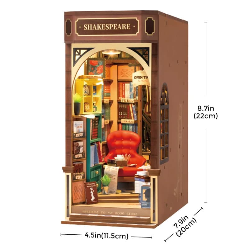 The Rolife Bookstore’s design was inspired by France’s famous ‘Shakespeare’s Bookstore,’ and we’ve incorporated its iconic scenes into this book nook kit. There are various books on the bookshelf in this book nook, and each book is very exquisite. During the assembly process, you need to place each book in its corresponding position according to the classification on the bookshelf to ensure that the books in the bookstore are easy to read.