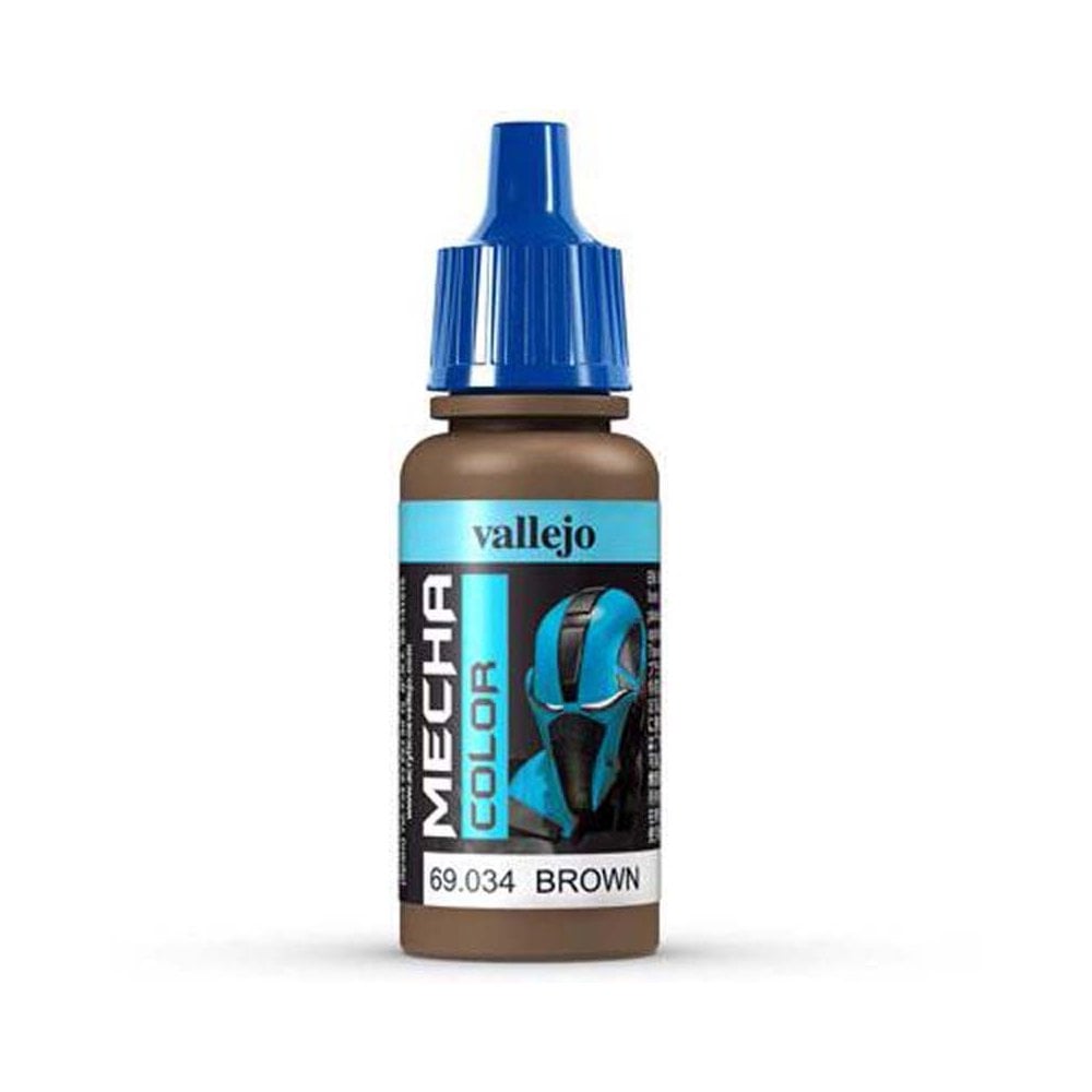 Brown 69.034 Vallejo Mecha Color New formula acrylic colors with a satin finish, extra resistant and impact proof especially designed for airbrushing surfaces exposed to aggressive manipulation. The advanced formulation contains a revolutionary component which guarantees exceptional adherence on even the most difficult surfaces, and offers great resistance to rough handling, impact, friction, scratches, etc. Once dry, the Mecha surface looks the same as the original plastic of the model, while yet the smallest details of the original remain clearly visible. The color range includes primers as well as special varnishes ‚¨ also with an exclusive formulation- and a series of colors for aging and weathering effects. It is recommended to apply the Mecha colors in several layers on the previously primed surface; a few hours after application the colors will have dried to form a homogenous coating of extraordinary strength and resistance. Mecha Color can be airbrushed directly or diluted with Vallejo Airbrush Thinner or Flow Improver, and the colors can also be applied by brush. The compressor adjustment recommended is 15 ‚¨ 20 PSI o 0.5 to 1 kg. For best airbrush maintenance we recommend using the Vallejo Airbrush Cleaner.Safety: Mecha Color is not flammable, and does not contain solvents. Please see also certified safety information of the product on the Safety page.Packaging: Mecha Color is available in 17 ml./0.57 fl.oz. bottles (with eyedropper). Mecha Primer and Mecha Varnish are also available in 60 ml./2.02 fl.oz. and 200 ml./6.76 fl.oz. bottles (with flip top and eyedropper).