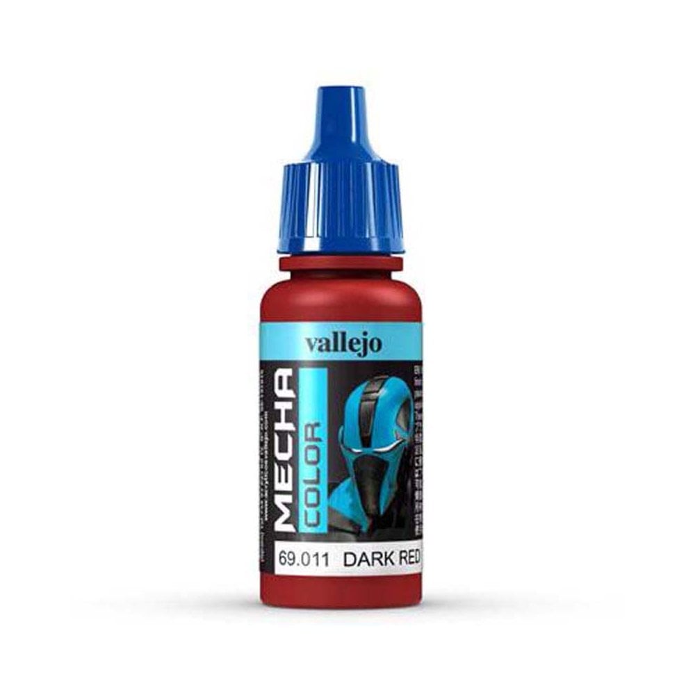 Dark Red 69.011 Vallejo Mecha Color New formula acrylic colors with a satin finish, extra resistant and impact proof especially designed for airbrushing surfaces exposed to aggressive manipulation. The advanced formulation contains a revolutionary component which guarantees exceptional adherence on even the most difficult surfaces, and offers great resistance to rough handling, impact, friction, scratches, etc. Once dry, the Mecha surface looks the same as the original plastic of the model, while yet the smallest details of the original remain clearly visible. The color range includes primers as well as special varnishes ‚¨ also with an exclusive formulation- and a series of colors for aging and weathering effects. It is recommended to apply the Mecha colors in several layers on the previously primed surface; a few hours after application the colors will have dried to form a homogenous coating of extraordinary strength and resistance. Mecha Color can be airbrushed directly or diluted with Vallejo Airbrush Thinner or Flow Improver, and the colors can also be applied by brush. The compressor adjustment recommended is 15 ‚¨ 20 PSI o 0.5 to 1 kg. For best airbrush maintenance we recommend using the Vallejo Airbrush Cleaner.Safety: Mecha Color is not flammable, and does not contain solvents. Please see also certified safety information of the product on the Safety page.Packaging: Mecha Color is available in 17 ml./0.57 fl.oz. bottles (with eyedropper). Mecha Primer and Mecha Varnish are also available in 60 ml./2.02 fl.oz. and 200 ml./6.76 fl.oz. bottles (with flip top and eyedropper).