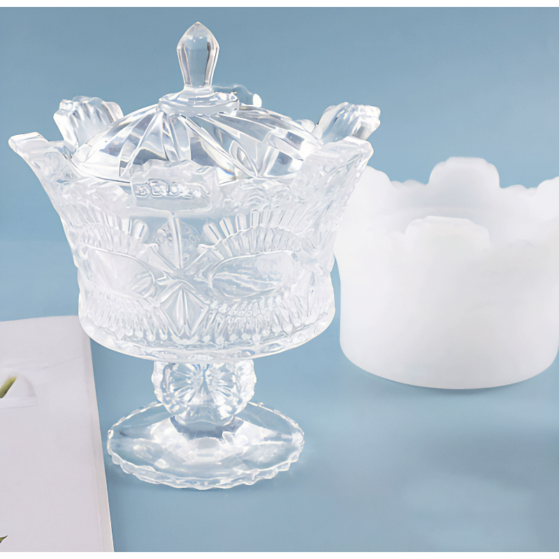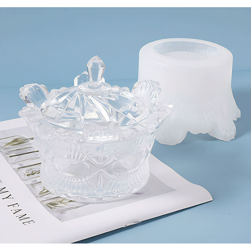 This silicone mould set is designed for casting a decorative container with a raised, footed base. The mould captures curved contours and ornamental detail, making it suitable for creating display containers, candle holders, trinket pots or decorative vessels depending on the casting material used.