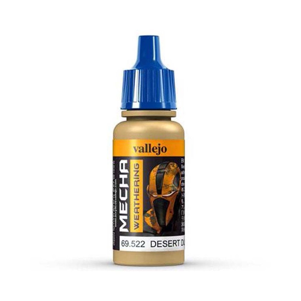 Desert Dust Wash 69.522 Vallejo Mecha Color New formula acrylic colors with a satin finish, extra resistant and impact proof especially designed for airbrushing surfaces exposed to aggressive manipulation. The advanced formulation contains a revolutionary component which guarantees exceptional adherence on even the most difficult surfaces, and offers great resistance to rough handling, impact, friction, scratches, etc. Once dry, the Mecha surface looks the same as the original plastic of the model, while yet the smallest details of the original remain clearly visible. The color range includes primers as well as special varnishes ‚¨ also with an exclusive formulation- and a series of colors for aging and weathering effects. It is recommended to apply the Mecha colors in several layers on the previously primed surface; a few hours after application the colors will have dried to form a homogenous coating of extraordinary strength and resistance. Mecha Color can be airbrushed directly or diluted with Vallejo Airbrush Thinner or Flow Improver, and the colors can also be applied by brush. The compressor adjustment recommended is 15 ‚¨ 20 PSI o 0.5 to 1 kg. For best airbrush maintenance we recommend using the Vallejo Airbrush Cleaner.Safety: Mecha Color is not flammable, and does not contain solvents. Please see also certified safety information of the product on the Safety page.Packaging: Mecha Color is available in 17 ml./0.57 fl.oz. bottles (with eyedropper). Mecha Primer and Mecha Varnish are also available in 60 ml./2.02 fl.oz. and 200 ml./6.76 fl.oz. bottles (with flip top and eyedropper).