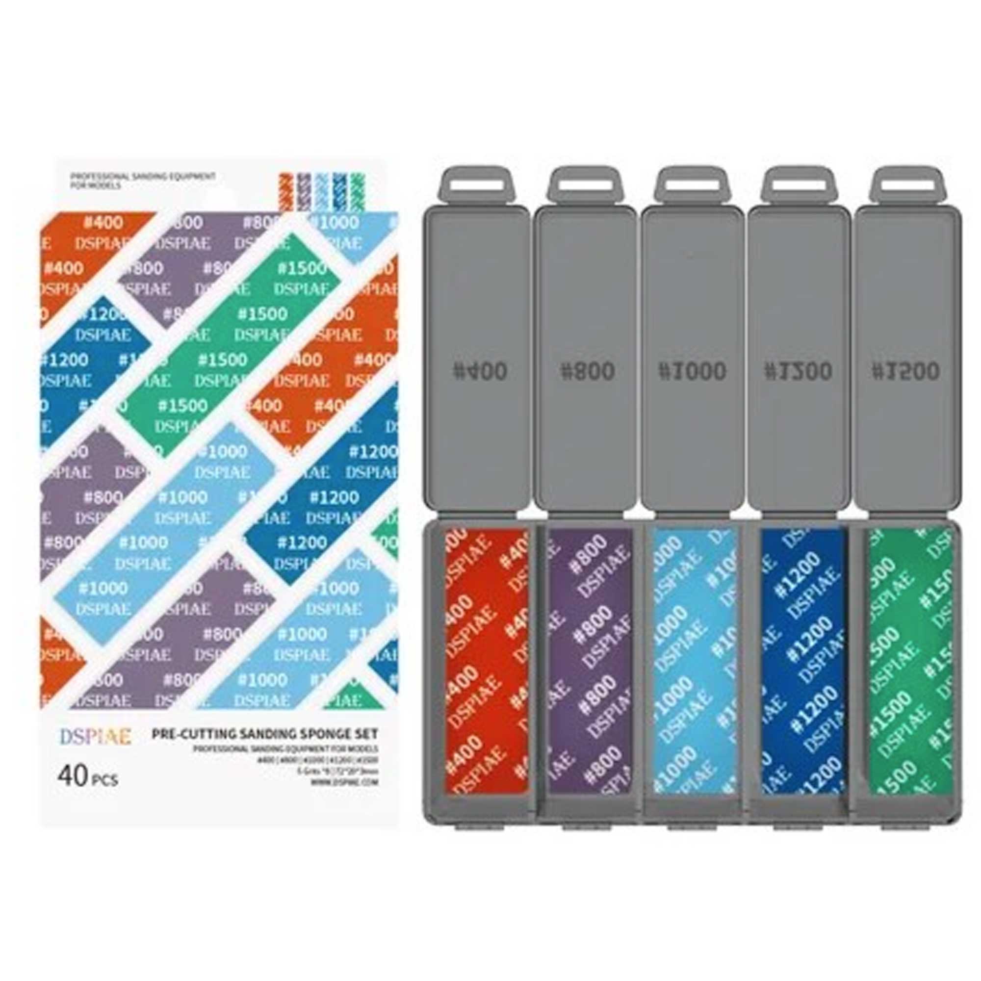 The DSPIAE DS3-S01 is a comprehensive sanding sponge set designed for precision work in scale modeling and other fine-detail applications. This set includes 40 pre-cut sponges in five grits: #400, #800, #1000, #1200, and #1500, with eight sponges of each grit. Ideal for both wet and dry sanding, these sponges are perfect for smoothing rough edges, preparing surfaces, and achieving a uniform finish on various materials such as plastic, resin, and metal.