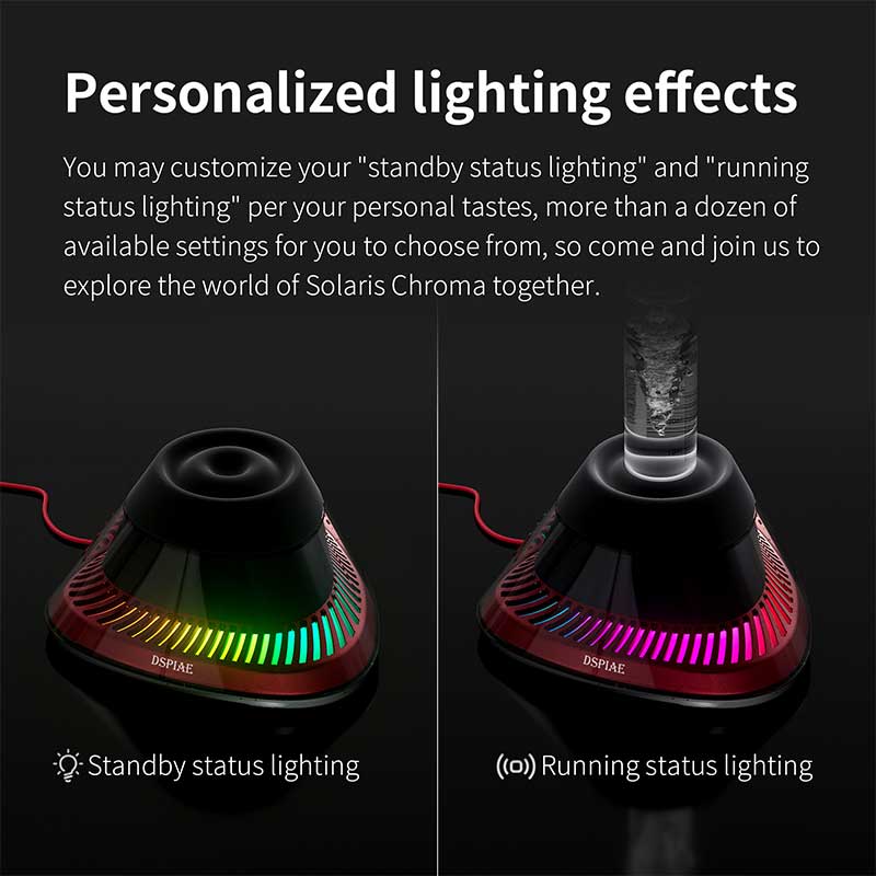 - Customisable lighting for standby and running modes